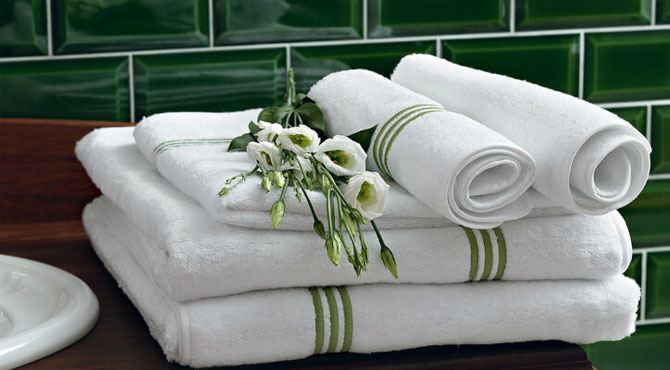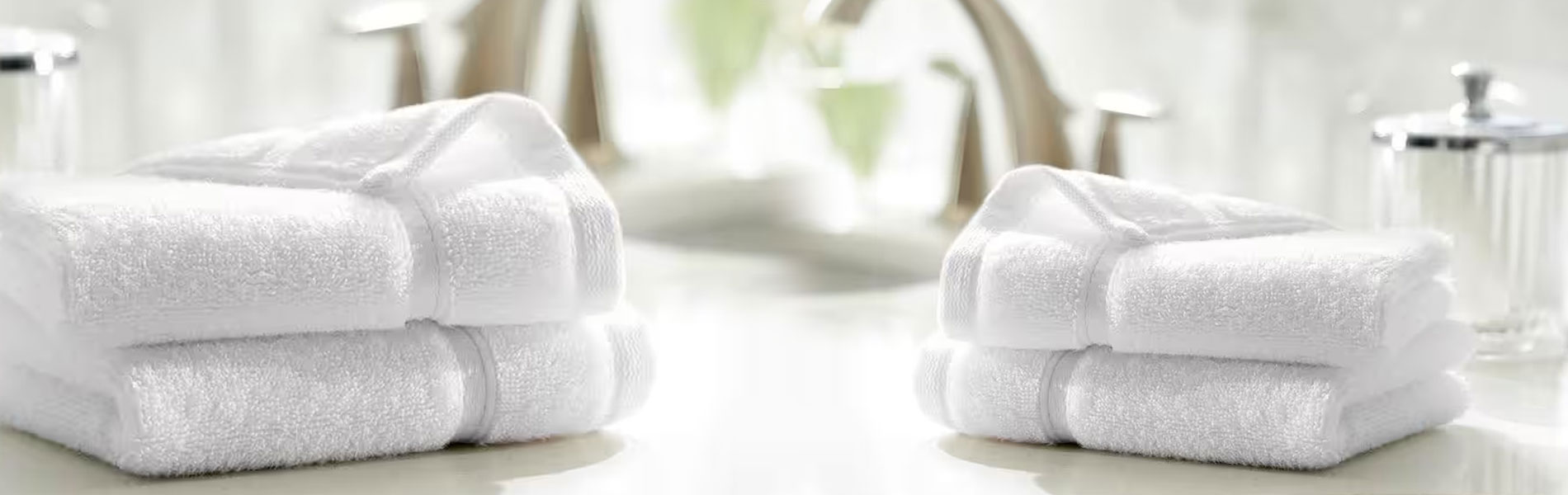 Hand Towels: Small, white cotton towels for hand drying near sinks to maintain bathroom hygiene.